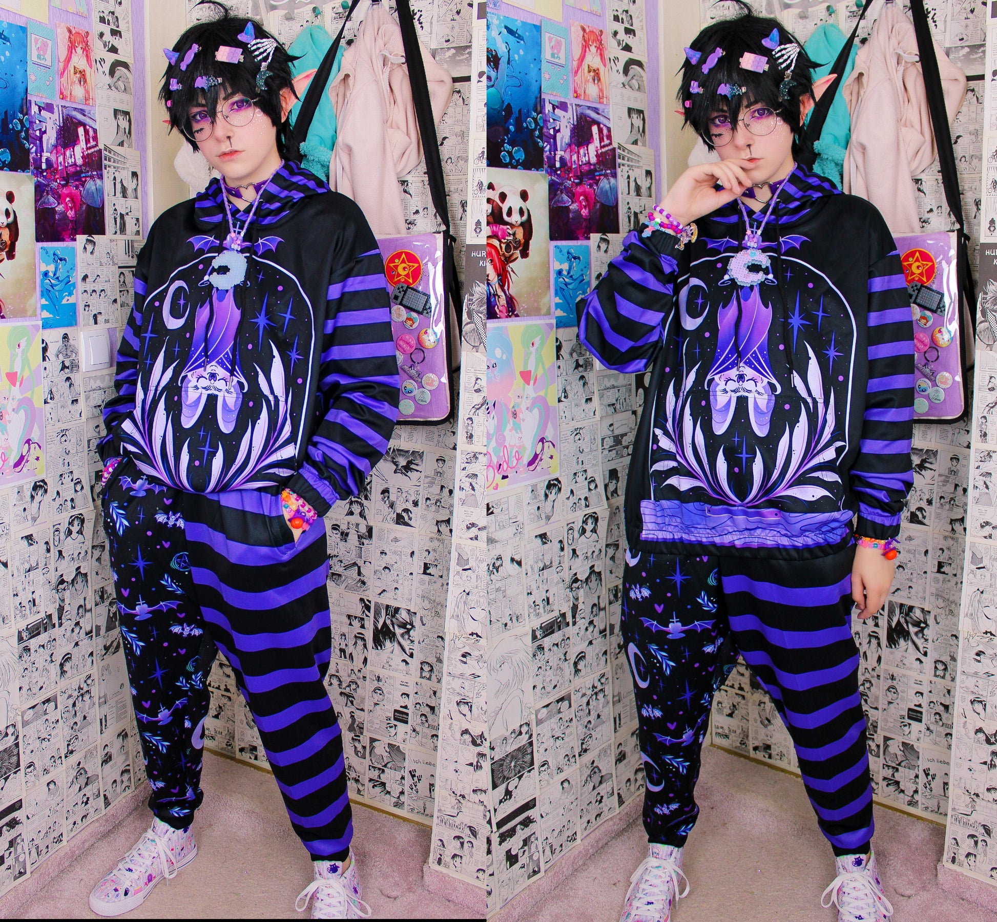 Creepy Cute Purple Bat Jogger Pants Pastel Goth Clothing for a Spooky Yami Kawaii Outfit D2220021