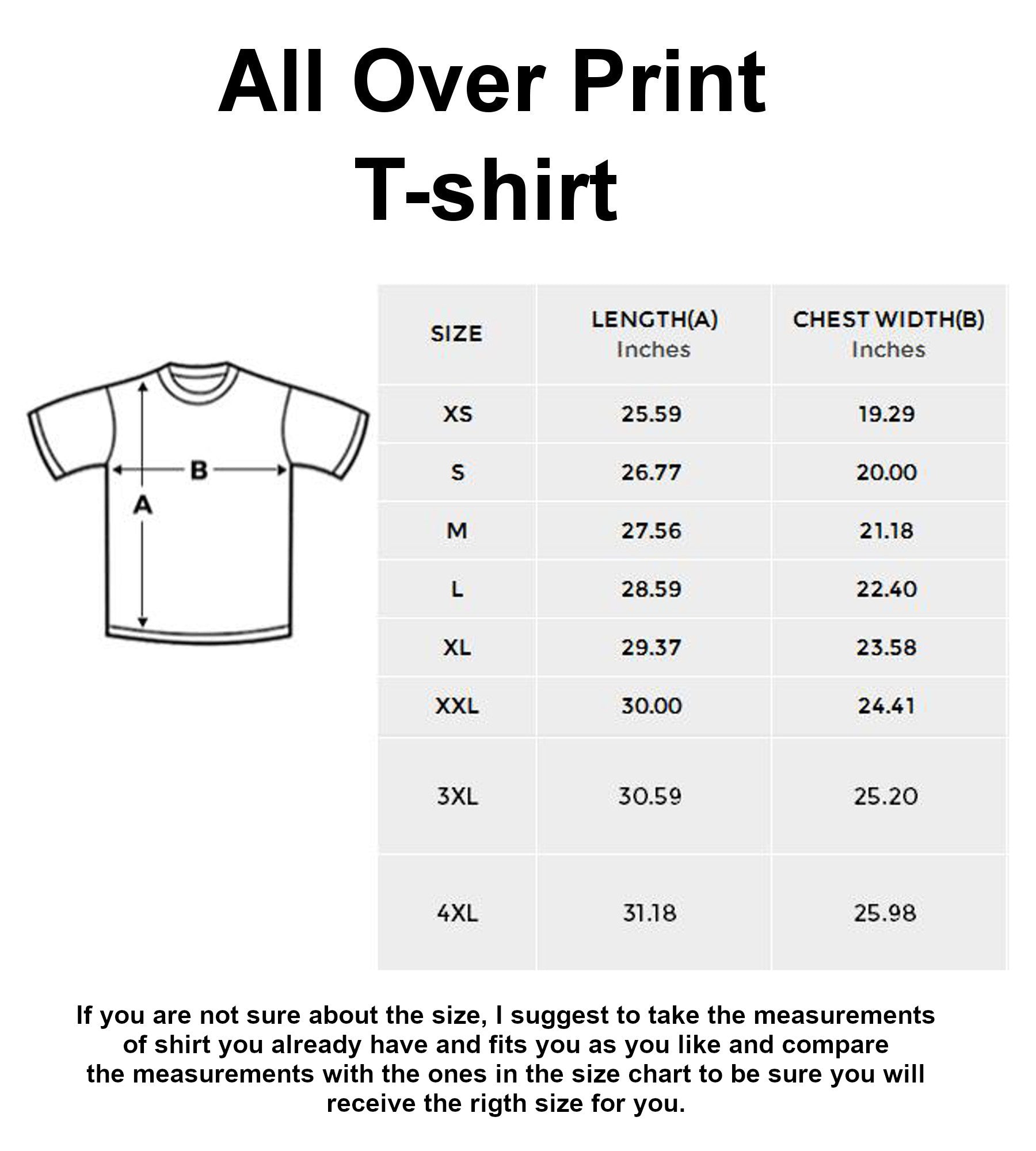 - 10.23 Oz. Polyester fabric. Dye-sublimation printing, all-over print T-shirt