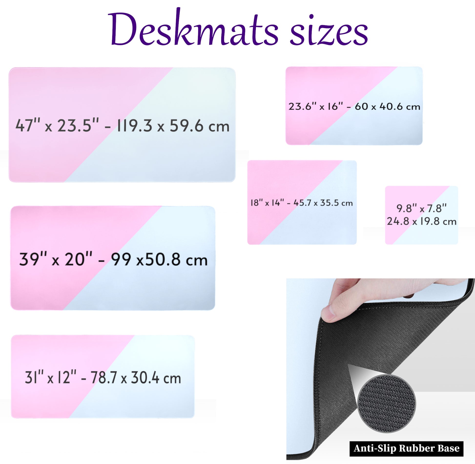 - Front side: polyester material and black back side: steady rubber base.