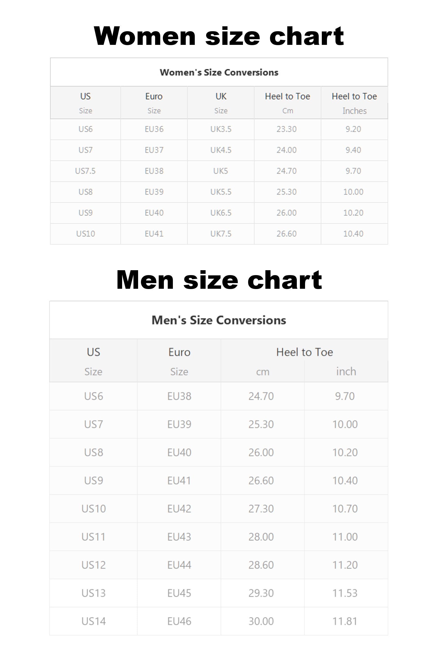 - Women US 6-10/ UK 3.5-7.5/ EU 36-41
